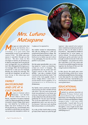her marriage. When she found God, she certain cult church in Limpopo. My not get baptized at that church.